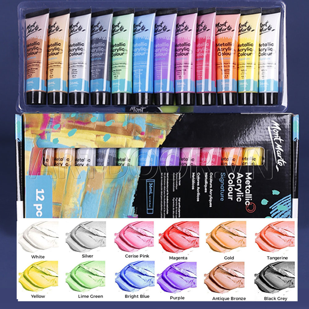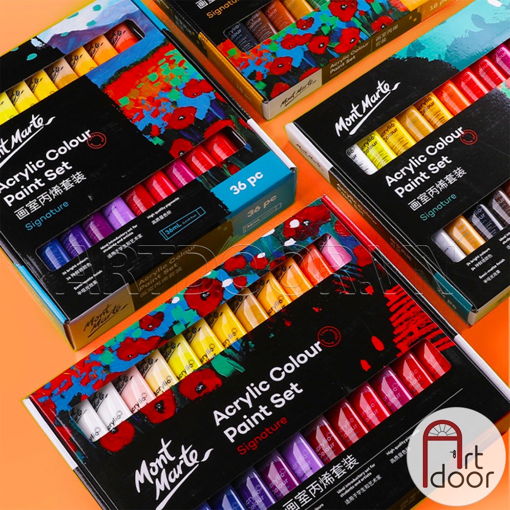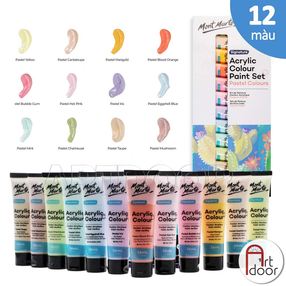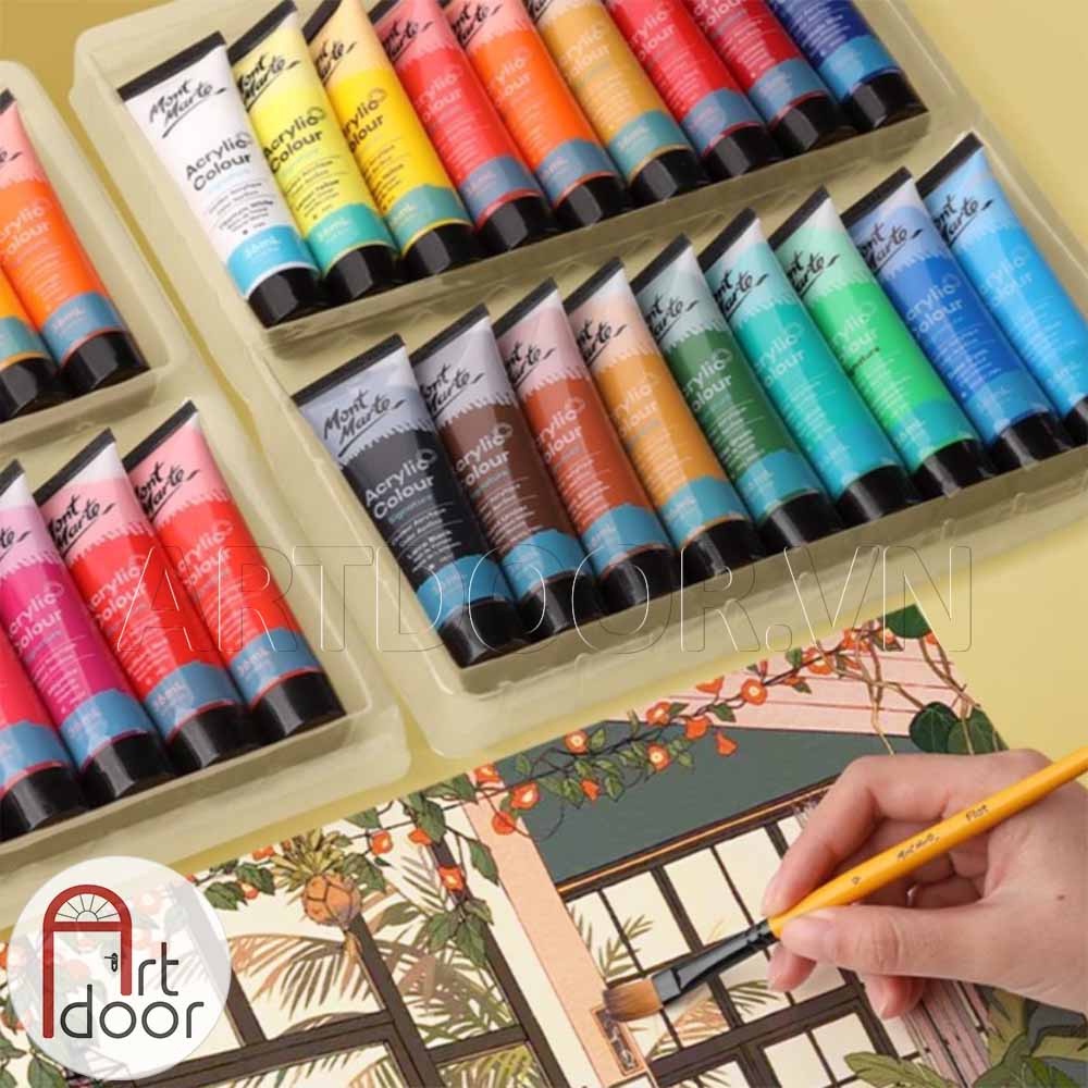 - Màu Acrylic Mont Marte là lựa chọn tuyệt vời cho những tác phẩm nghệ thuật và các sản phẩm thủ công. Chất màu có kết cấu mịn và kem không độc hại, có thể được sử dụng trên hầu hết các bề mặt bao gồm vải canvas, bìa cứng và da. |