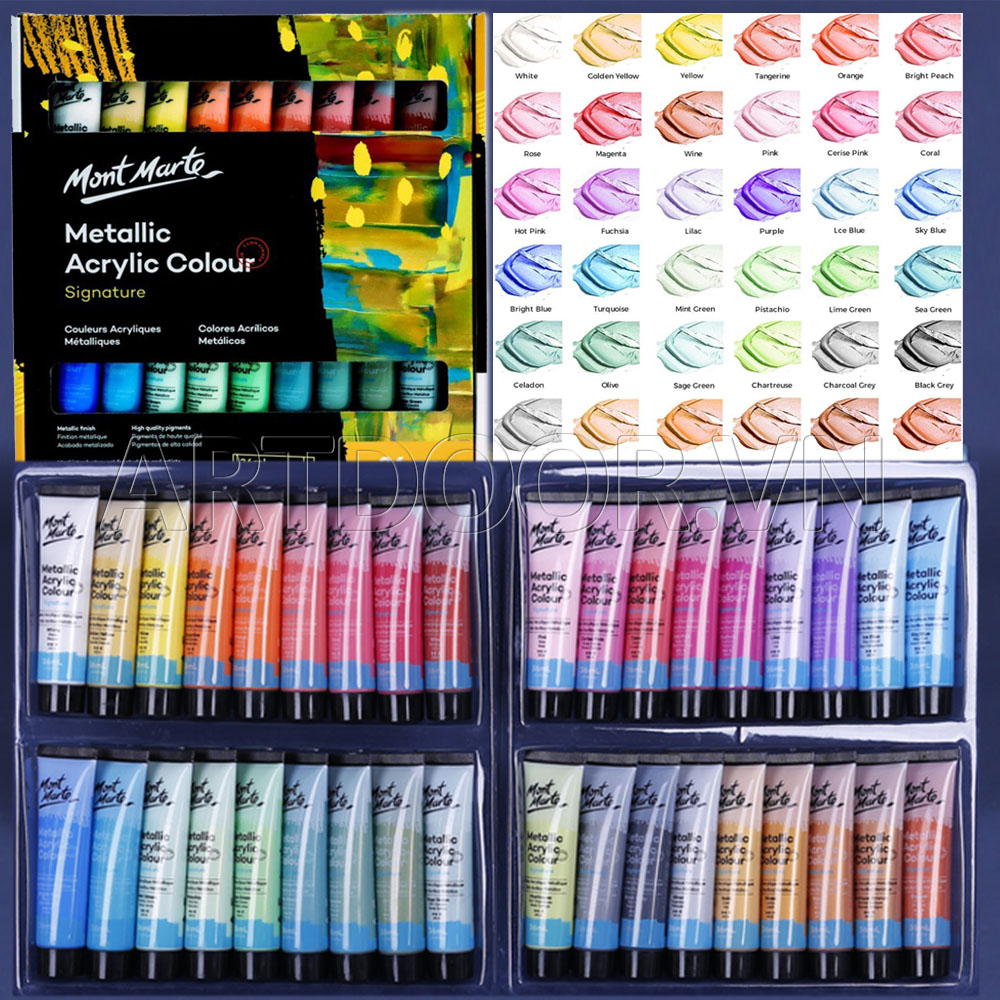 - Bộ màu Acrylic MONT MARTE Nhũ/ Pastel/ Basic Tuýp 36ml (hộp giấy) |