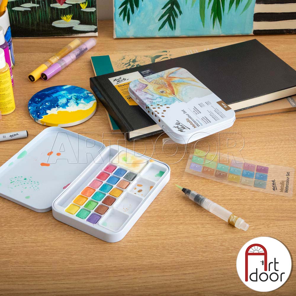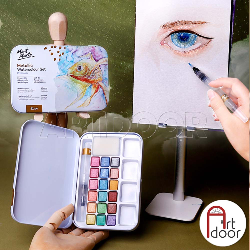 - Bộ màu Nước Nhũ MONT MARTE Cake set 21 món (hộp thiếc) |