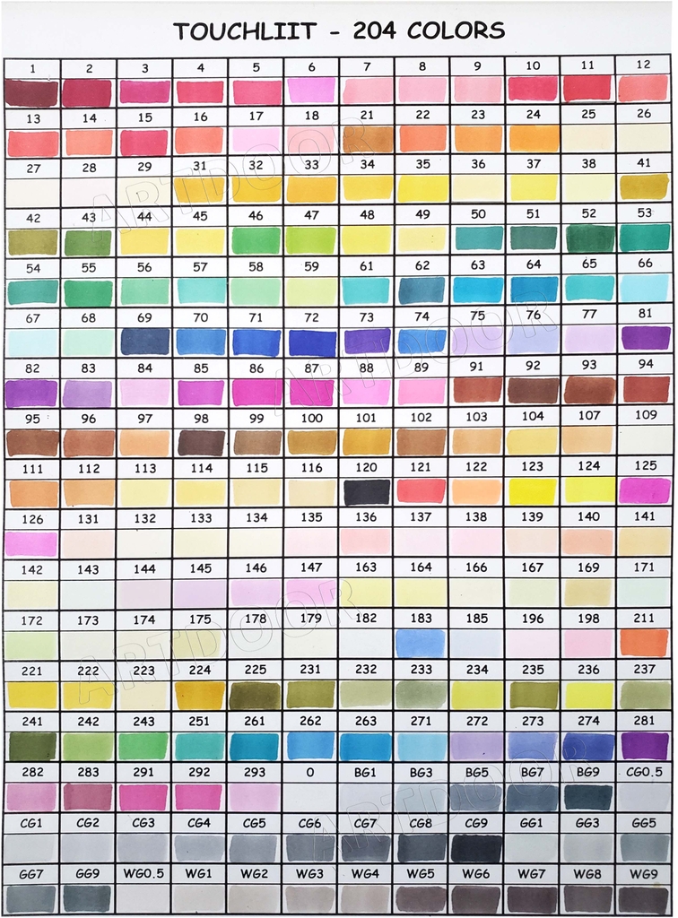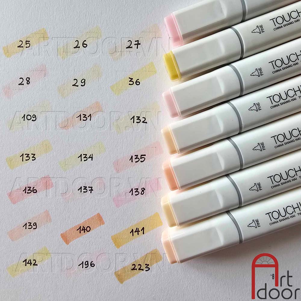 - Bút marker TOUCHLIIT chuyên về tông màu nhạt, thậm chí siêu nhạt. Rất phù hợp với người mới tập vẽ marker, thích chồng nhiều lớp, thích phối màu. Ngoài ra, màu sắc của bút sẽ thay đổi một chút theo từng đợt nhập hàng, tùy vào loại giấy vẽ, và số lớp tô chồng. Nên bảng màu của shop chỉ mang tính tham khảo thui nhé. |