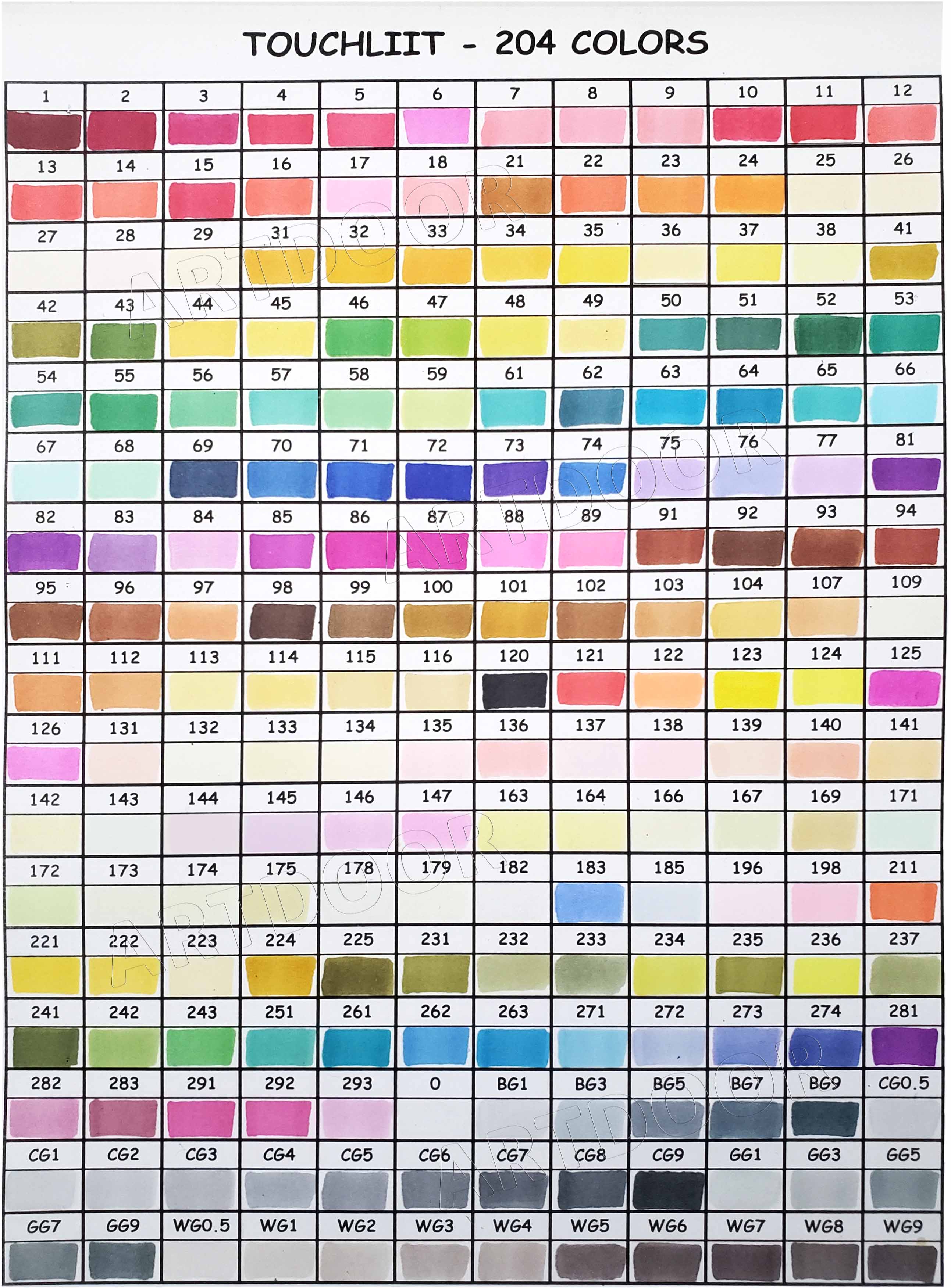 - Bút marker TOUCHLIIT chuyên về tông màu nhạt, thậm chí siêu nhạt. Rất phù hợp với người mới tập vẽ marker, thích chồng nhiều lớp, thích phối màu. Ngoài ra, màu sắc của bút sẽ thay đổi một chút theo từng đợt nhập hàng, tùy vào loại giấy vẽ, và số lớp tô chồng. Nên bảng màu của shop chỉ mang tính tham khảo thui nhé. |