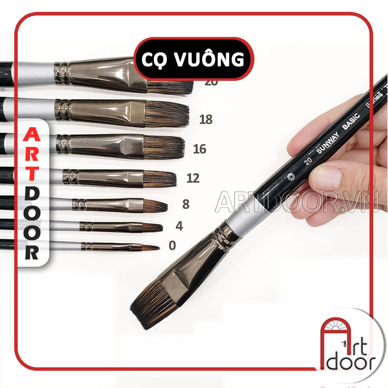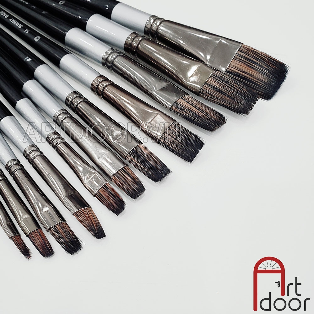 - Cọ vẽ đầu Vuông SUNWAY Basic lông Sóc Mix thân Đen (207F) |
