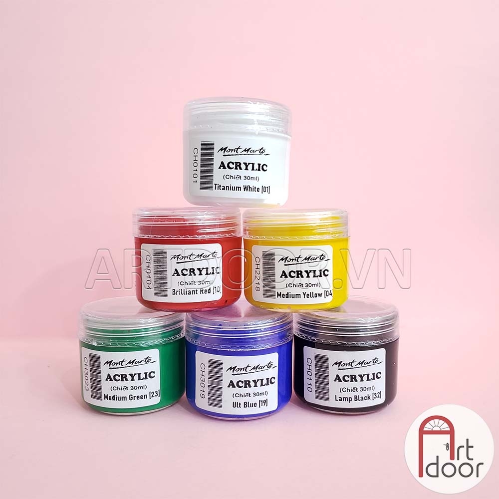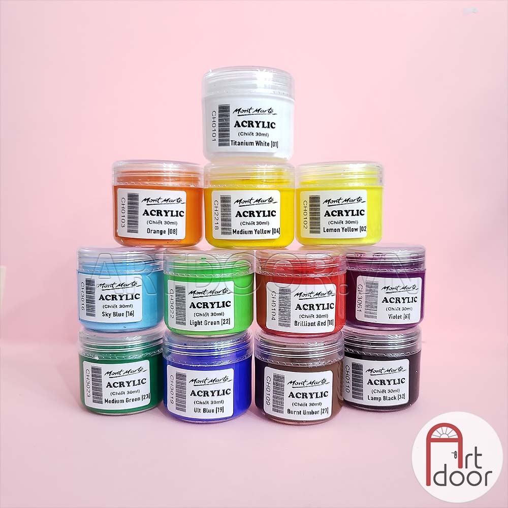 - Combo màu vẽ Acrylic MONT MARTE Hũ (chiết 30ml) custom áo, vải, gỗ, kính, tô tượng, đất sét, số hóa |