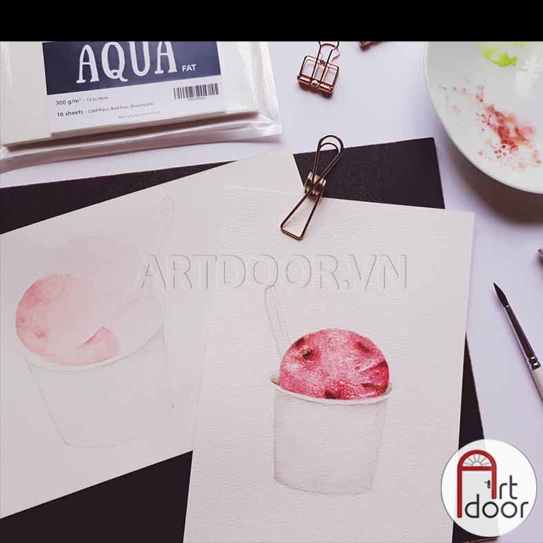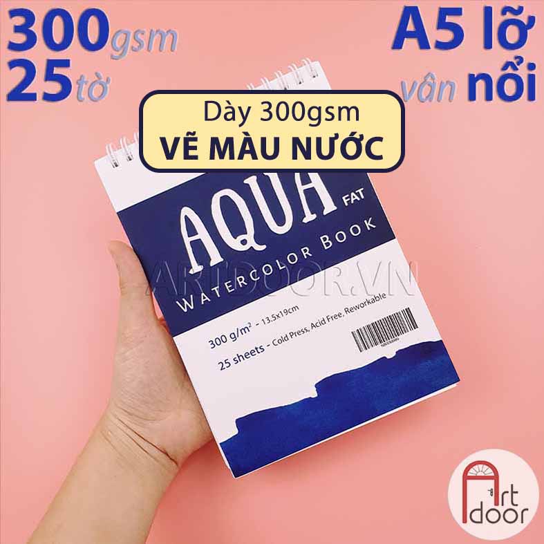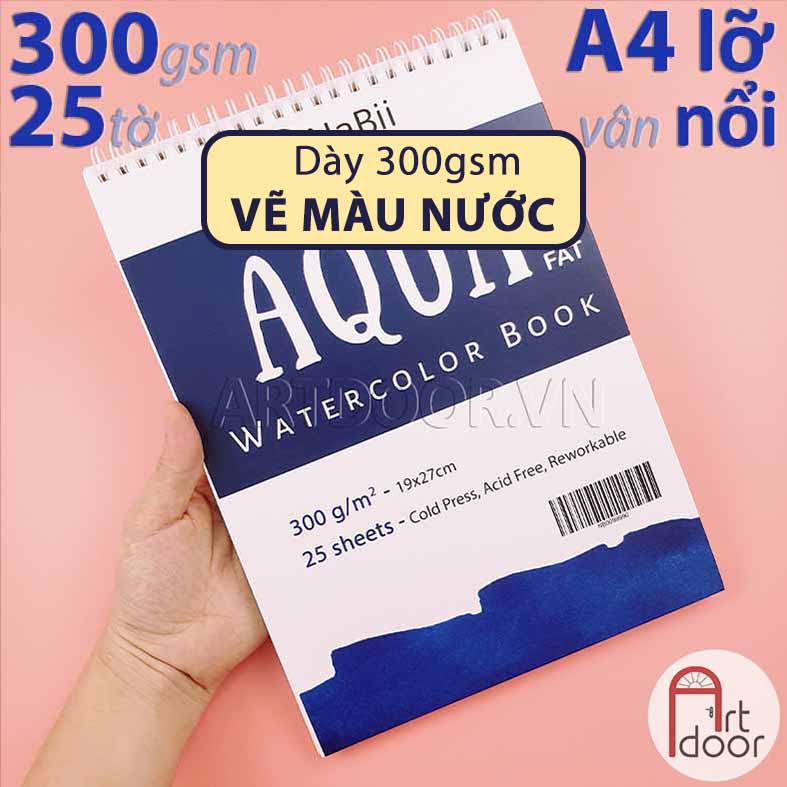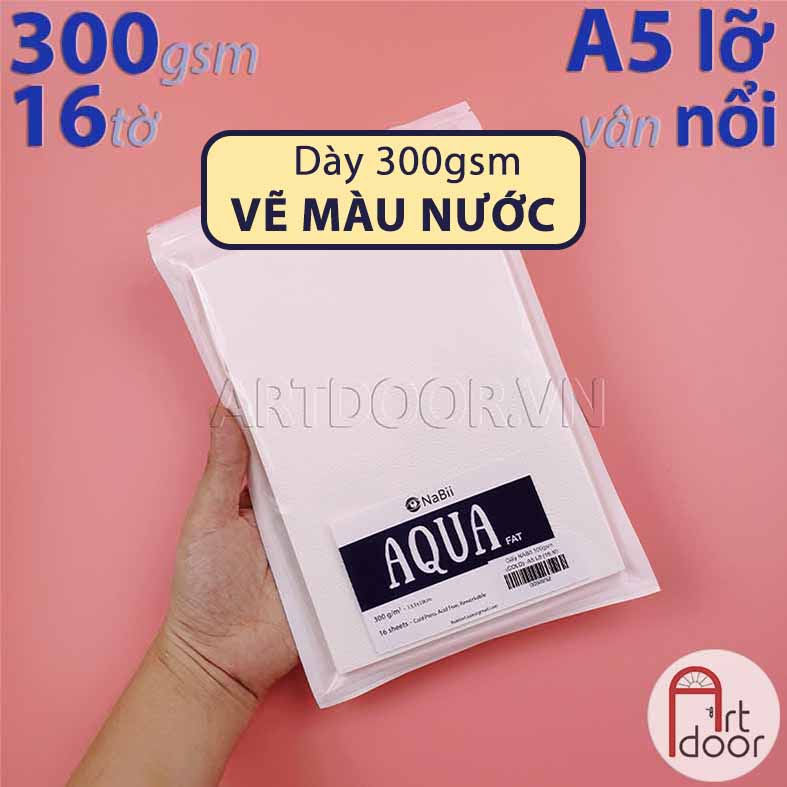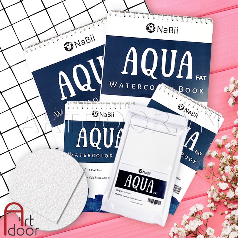 - Giấy vẽ hoặc Sổ màu nước NABII Aqua Fat 55% Cotton dày 300gsm (vân nổi Cold) |