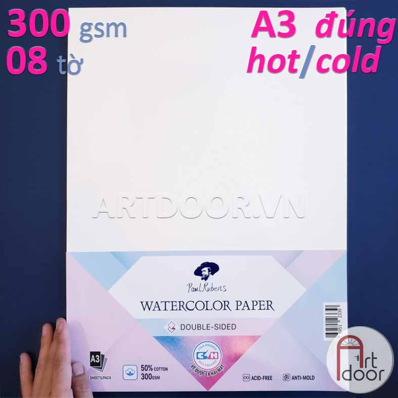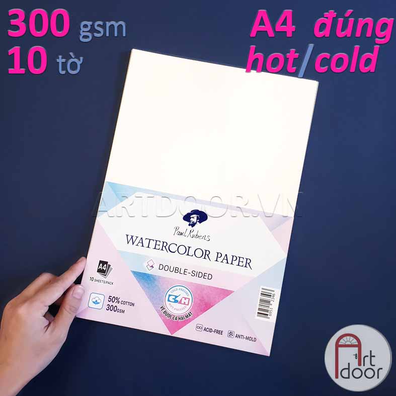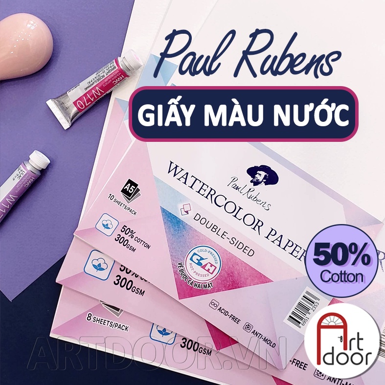 - Giấy vẽ màu nước PAUL RUBENS 50% Cotton dày 300gsm (vân nổi Cold) |