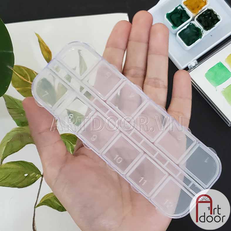 - Hộp 12 ngăn chuyên dụng đựng màu nước chiết để mang đi di chuyển hoặc đựng phụ kiện. |